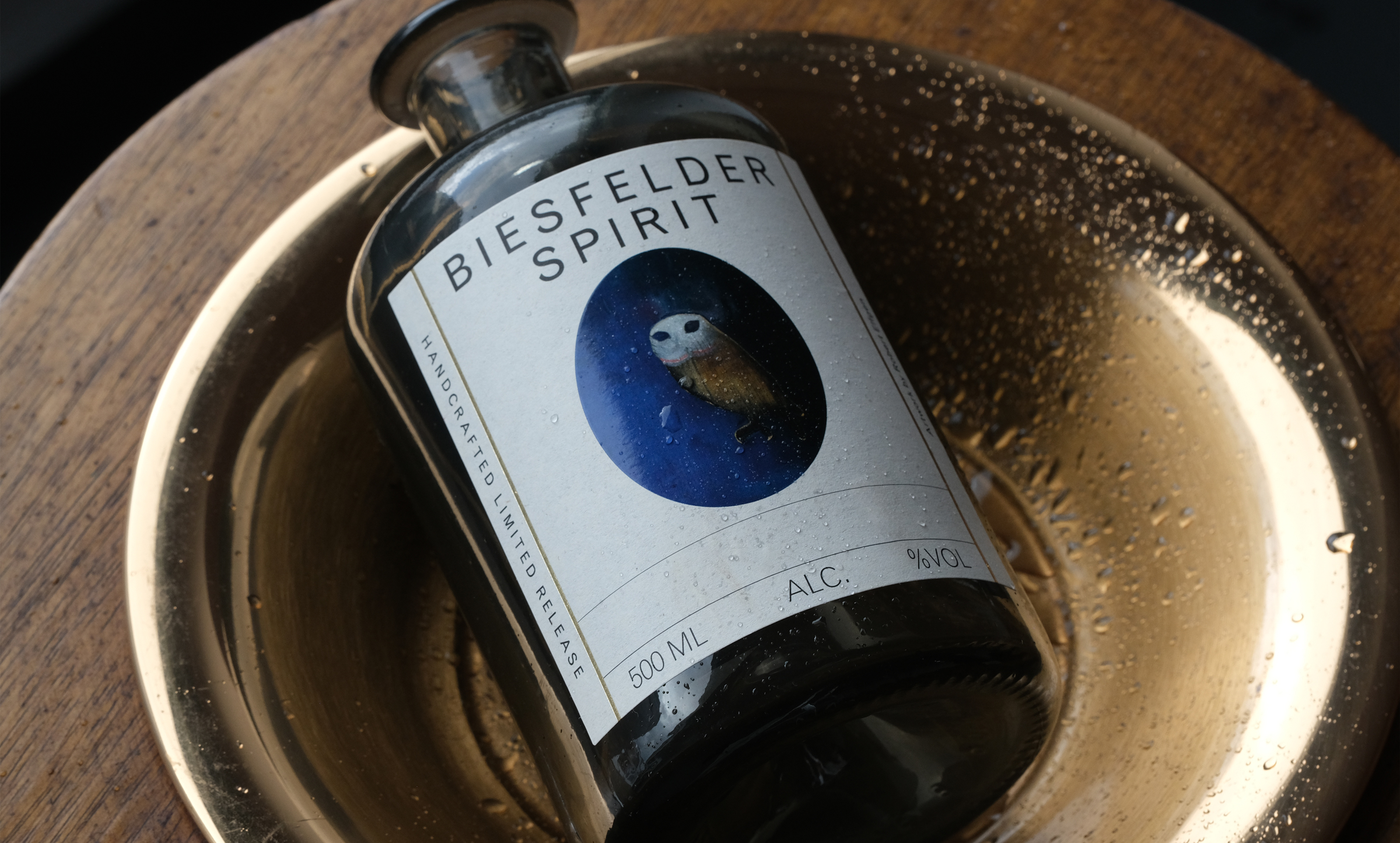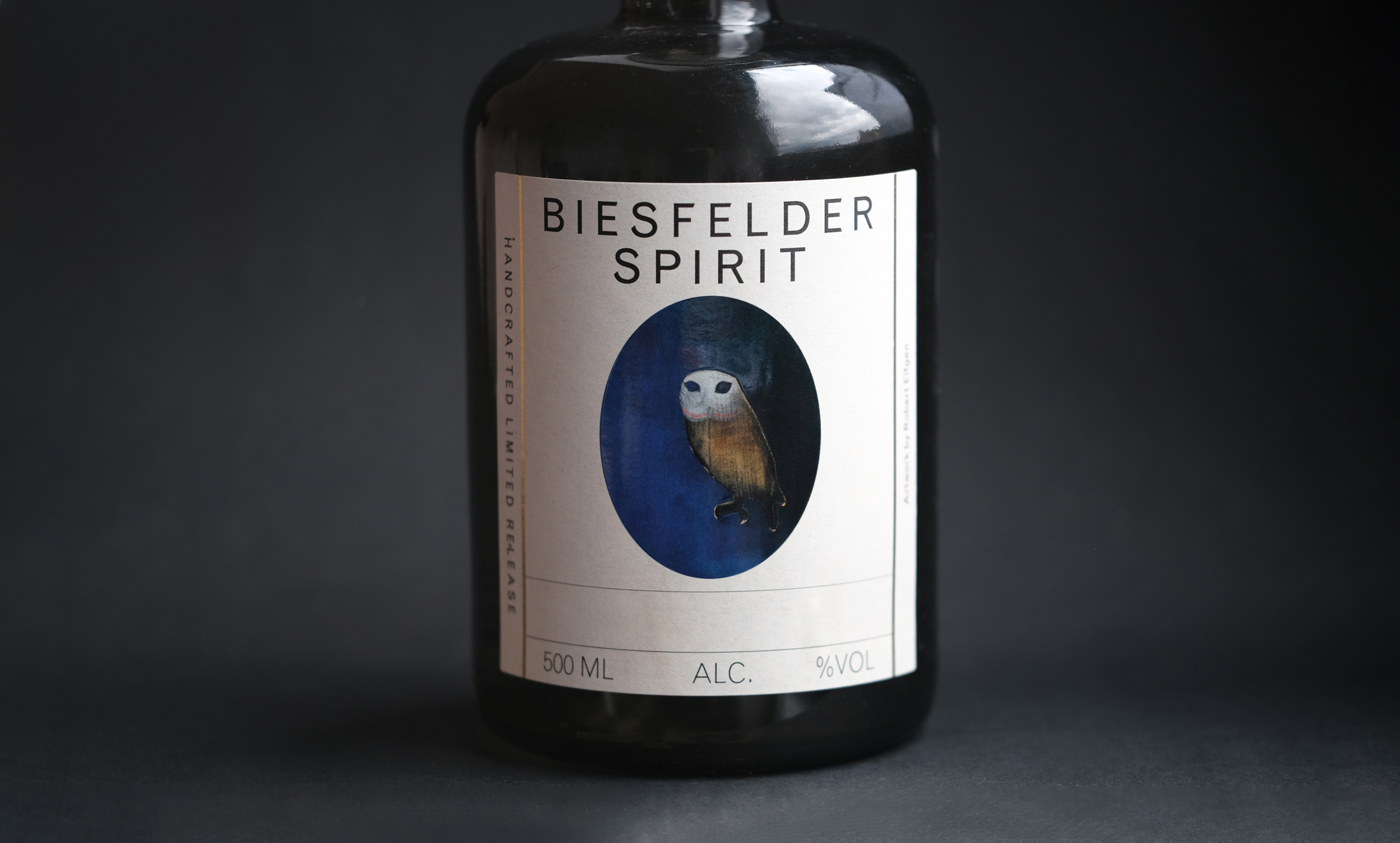 Featuring a motive by artist Robert Elfgen, Heller & C designs bottle and label for a private collectors’ self-produced eau de vie originating right from their home gardens.