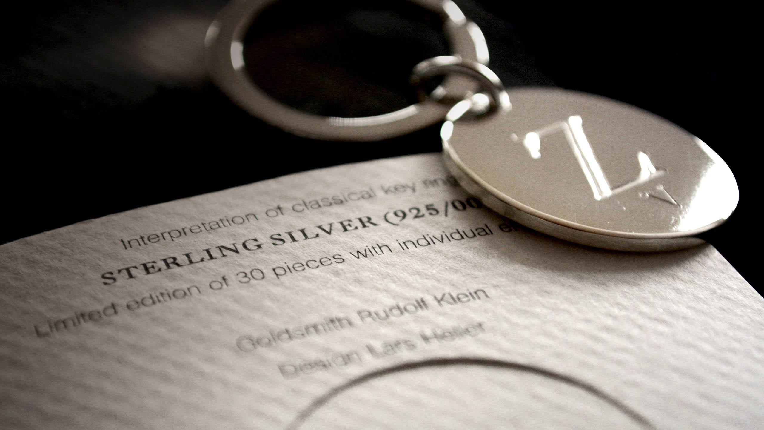 In collaboration with goldsmith Rudolf Klein we developed a classical design for a key ring with individual engraving.