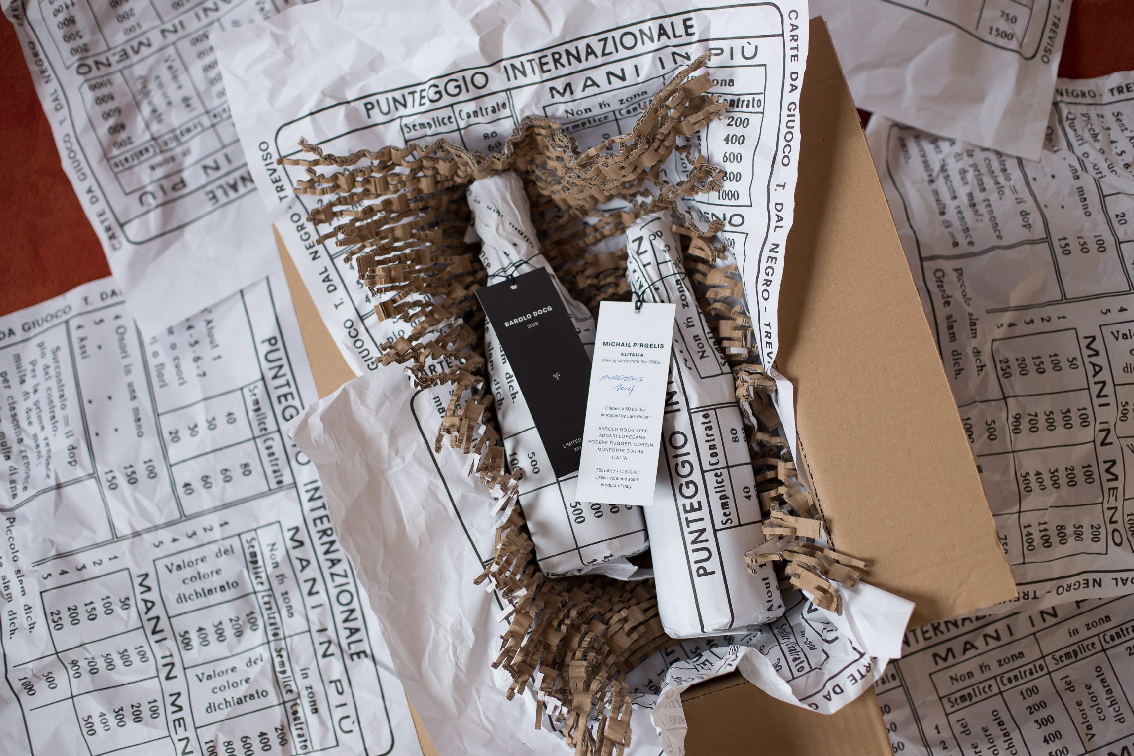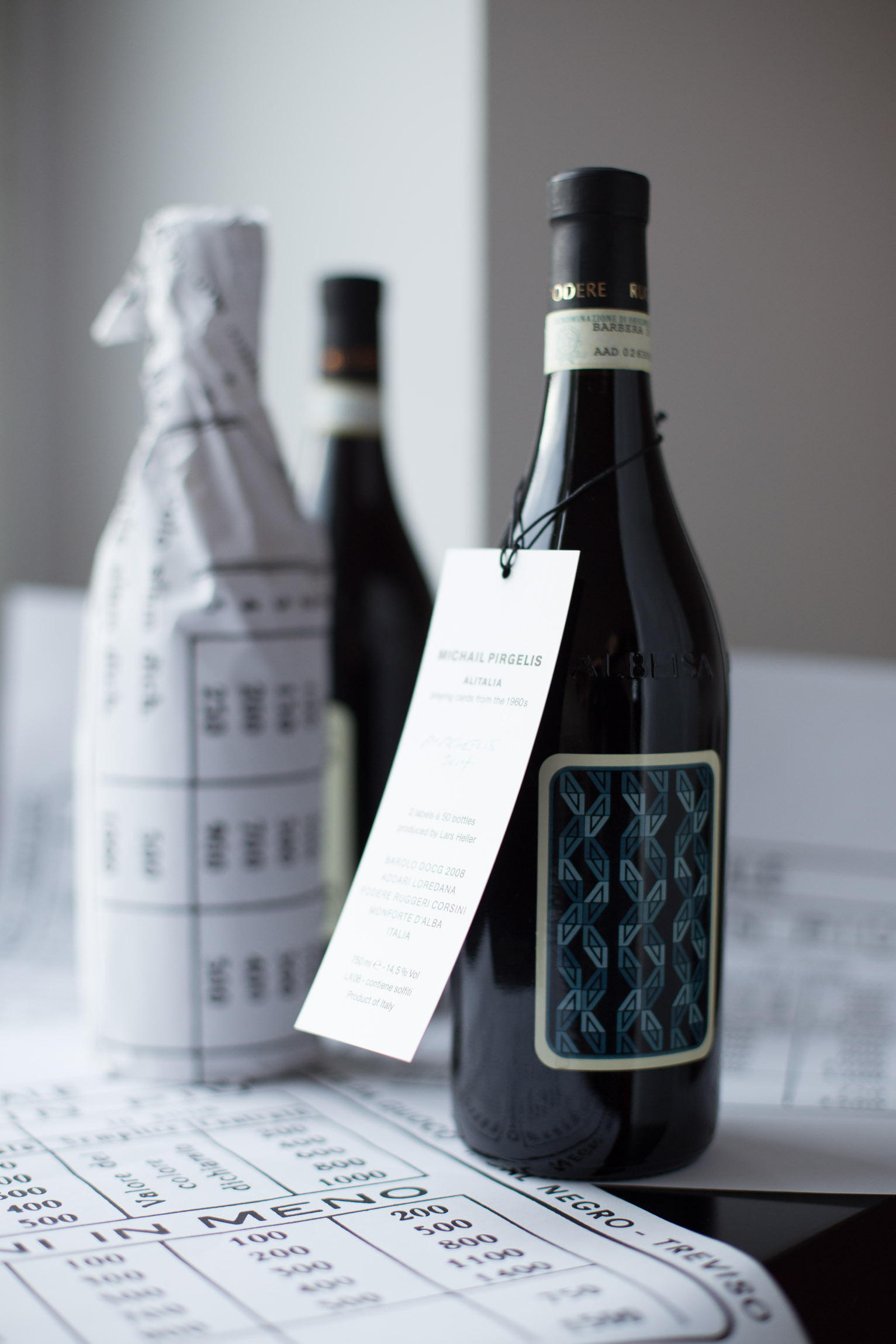 For another edition of our favorite BAROLO DOCG we teamed up with artist Michail Pirgelis who contributed two label motives à 50 bottles featuring playing cards from Italian airline ALITALIA from the 1960s.