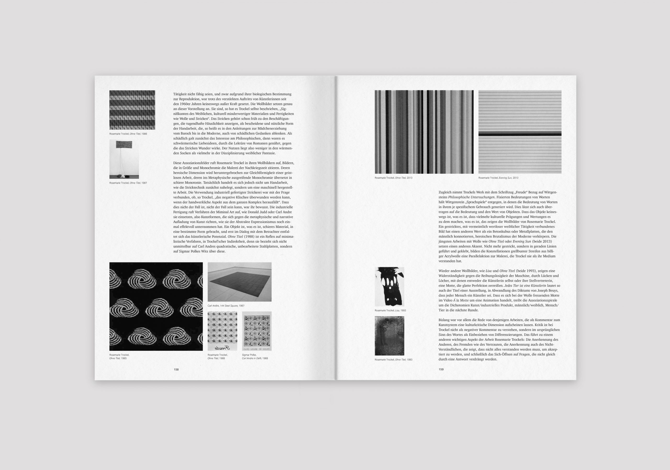 Heller & C having the pleasure to design an associated publication, the fine granularity and richness of detail in Trockel’s sculptures, especially in the dimly lit upper floor required special attention to the printing process. Through UV light implementation — for which each color dried individually after application — a particularly refined print image is created.