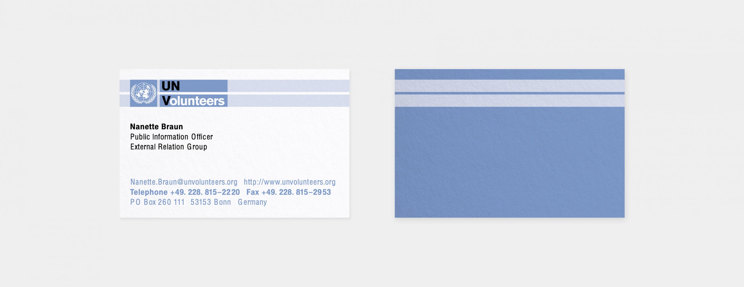 The corporate brand identity focuses on fast and clear recognition. The wordmark excludes any kind of moral symbolism. The UN should be perceived immediately as a legal and reliable representative of an official mandate.